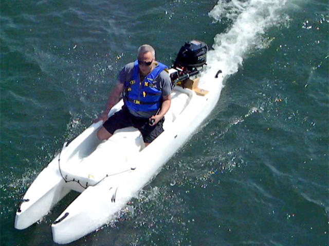 microskiff, stable kayak, portable boat, motor kayak
